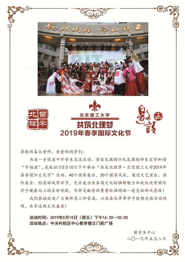 共筑北理梦·德赢AC米兰官网2019年春季国际文化节邀请函