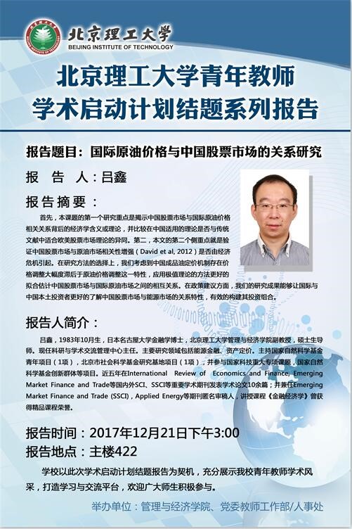 【结题汇报】青年教师学术启动计划结题系列报告——吕鑫
