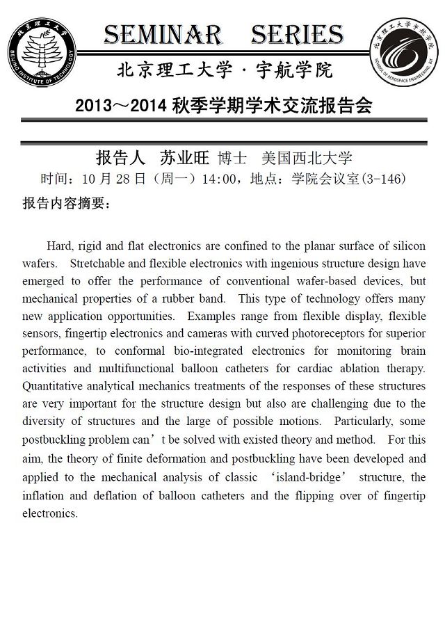 宇航学院10月28日学术报告预告