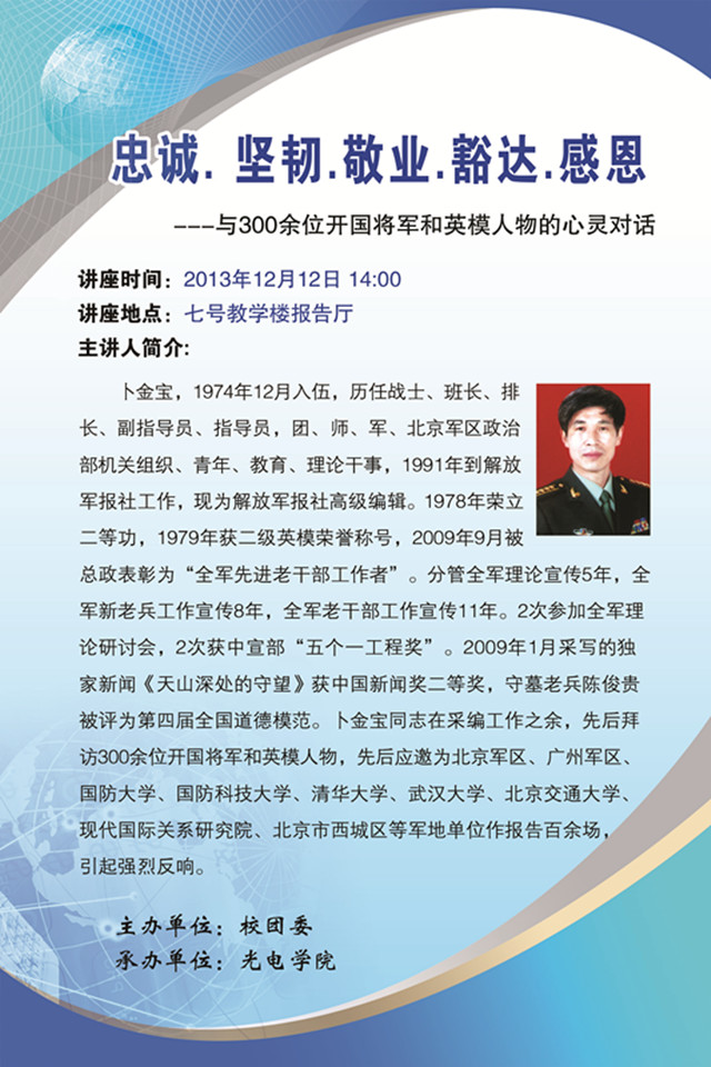 【信仰 青春 阳光】主题教育讲座预告