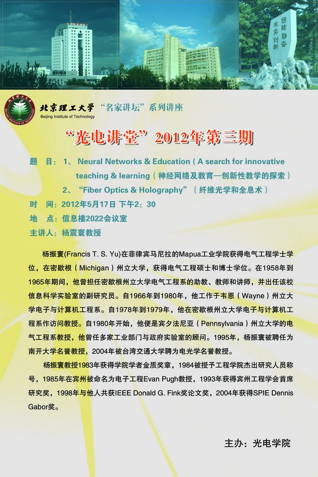 > 【光电讲堂】光电学院5月17日学术讲座预告