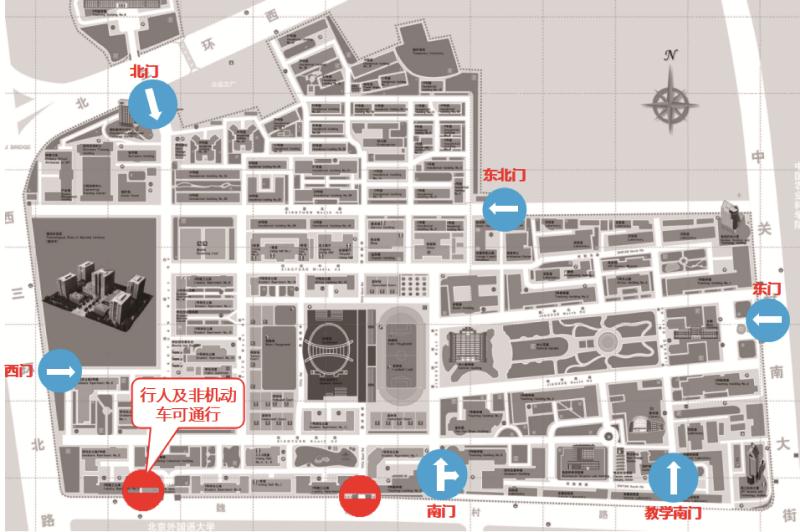 4、原进车南门(2号教工公寓东侧)只允许行人及非机动车通行;
