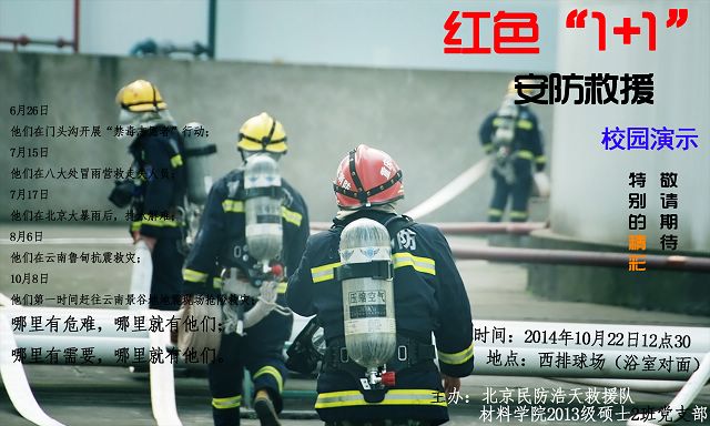 为进一步加强在校学生安全防护意识,使同学们了解民防系统和救援队的工作内容、救援方式,感受公益救援的奉献精神,德赢AC米兰官网材料学院2013级硕士2班党支部特邀请北京民防浩天救援队到我校进行民防科学普及和救援现场演示。