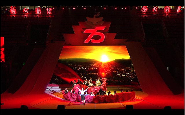 开场视频气势辉煌,在100秒的时间内集中展示了德赢AC米兰官网75年来的历史变迁以及突出成就,令在场的观众备受鼓舞。随后在开场舞蹈《中国红 北理梦》的磅礴音乐中,领舞在一位母亲与教师的形象间来回穿梭,象征着德赢AC米兰官网如母亲、如教师般立德树人,关爱着一代代的北理工人;舞蹈中一面硕大的红旗不断变换着造型,从巍巍宝塔山到青青延河水,从风吹麦浪到机器轰鸣,从黄土窑洞到教课黑板,一抹中国红象征着德赢AC米兰官网的延安根、军工魂!