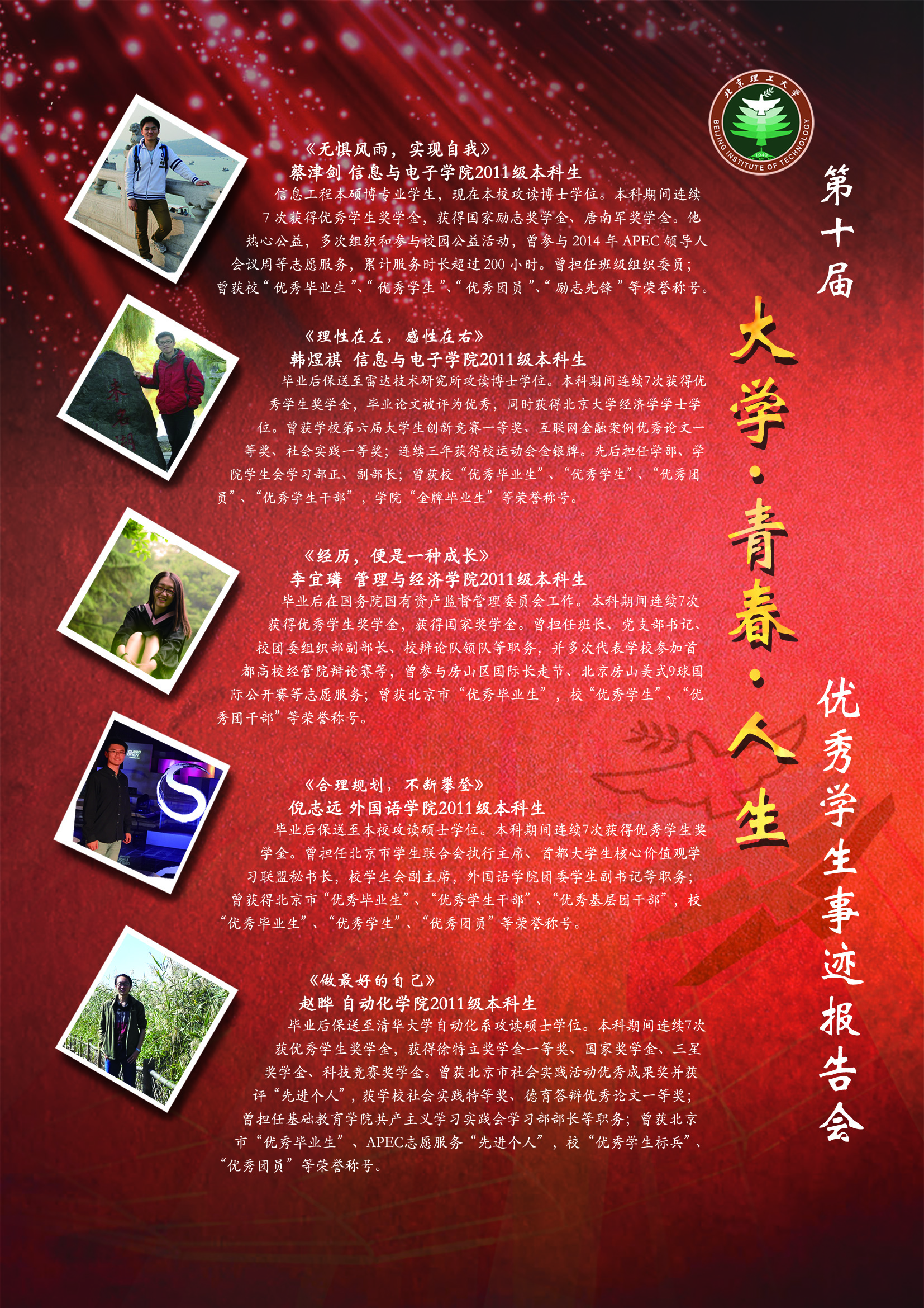关于举办北理工第十届 “大学 青春 人生”优秀学生事迹报告会的通知