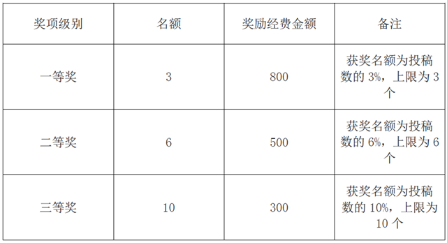 1.本次比赛分类别设置一、二、三等奖若干,发放荣誉证书并给予奖励,奖励标准见下表: