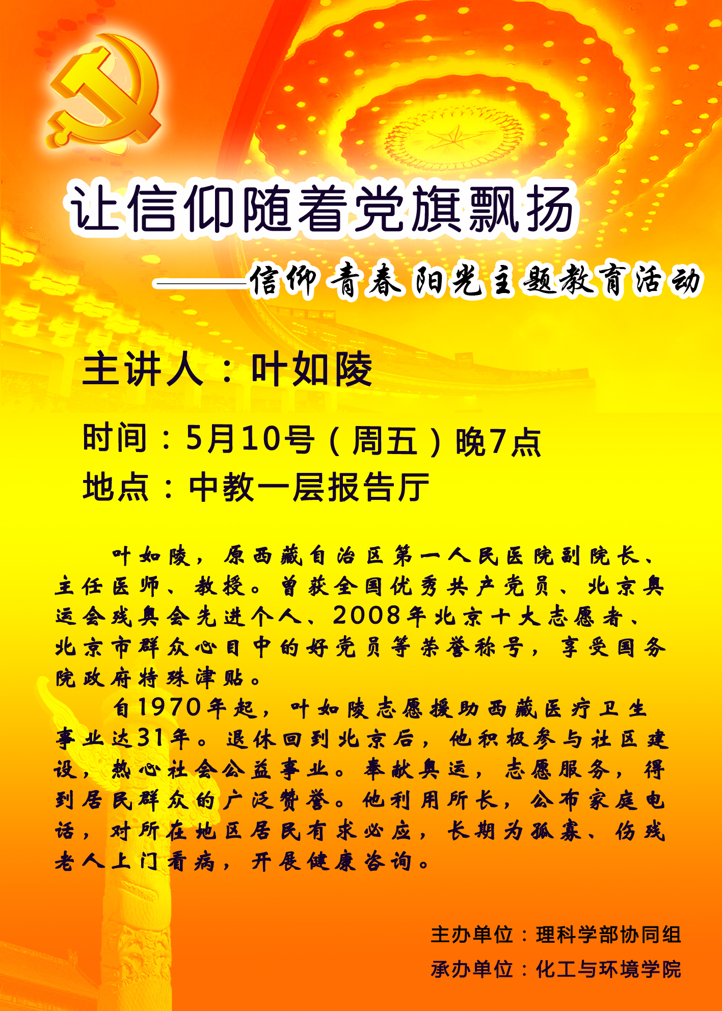 让信仰随着党旗飘扬——【信仰 青春 阳光】主题教育活动讲座通知