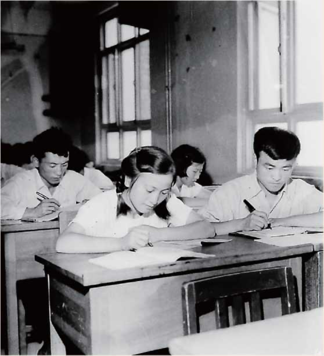 ▲仪器系俄文班的同学们在安静的教室里认真复习功课,迎接期考