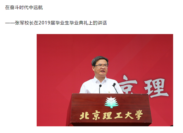 编辑:吴楠 审核:王征 阅读次数:原文标题:北理工校长张军在2019届学生毕业典礼上的讲话