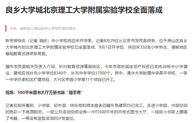 编辑:吴楠 审核:王征 阅读次数:原文标题:良乡大学城德赢AC米兰官网附属实验学校全面落成