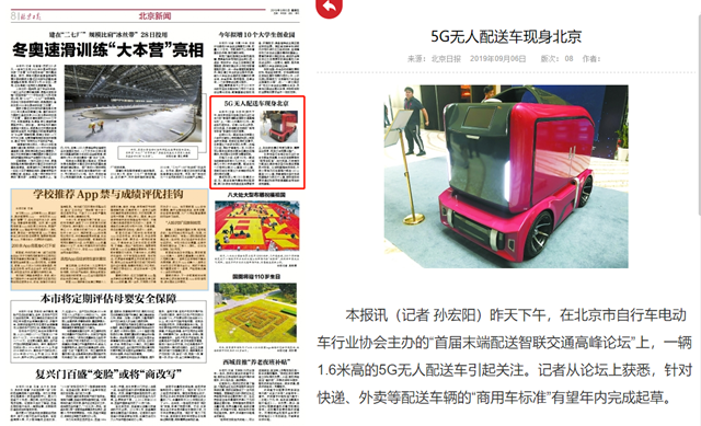 5G无人配送车现身北京