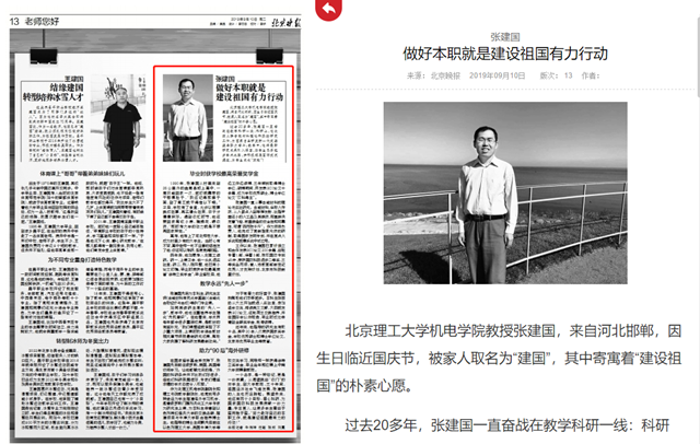德赢AC米兰官网机电学院教授张建国,来自河北邯郸,因生日临近国庆节,被家人取名为“建国”,其中寄寓着“建设祖国”的朴素心愿。