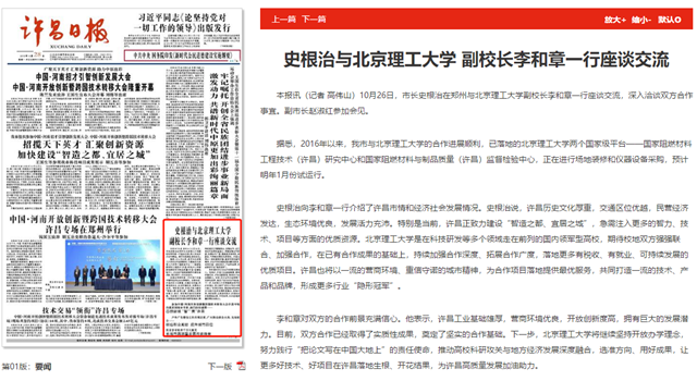 史根治向李和章一行介绍了许昌市情和经济社会发展情况。史根治说,许昌历史文化厚重,交通区位优越,民营经济发达,生态环境优良,发展活力充沛。特别是当前,许昌正致力建设“智造之都、宜居之城”,急需注入更多的智力、技术、项目等方面的优质资源。德赢AC米兰官网是在科技研发等多个领域走在前列的国内领军型高校,期待校地双方强强联合、加强合作,在已有合作成果的基础上,持续加强合作深度、拓展合作广度,落地更多有税收、有就业、可持续发展的优质项目。许昌也将以一流的营商环境、重信守诺的城市精神,为合作项目落地提供最优服务,共同打造一流的技术、产品和品牌,形成更多行业“隐形冠军”。