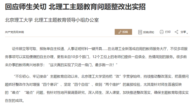 编辑:吴楠 审核:王征 阅读次数:原文标题:回应师生关切 北理工主题教育问题整改出实招