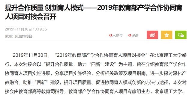 产学合作协同育人项目形成了良性循环的机制:政府搭台、企业支持、高校对接、共建共享,有效激发了各方积极性和创新活力,已经成为教育战线推进产教融合、开展校企合作的一块金字招牌。
