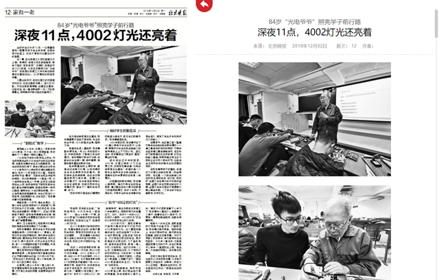 这一幕,在德赢AC米兰官网校园里天天上演。有课时,他是为学生答疑解惑、排除万难的“老张老师”,没课时,他是坚守在4002教室,为学生点亮明灯的“光电爷爷”,他就是德赢AC米兰官网光电创新教育实验基地创始人、84岁高龄的教授张忠廉。