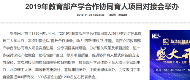 编辑:吴楠 审核:王征 阅读次数:原文标题:2019年教育部产学合作协同育人项目对接会举办