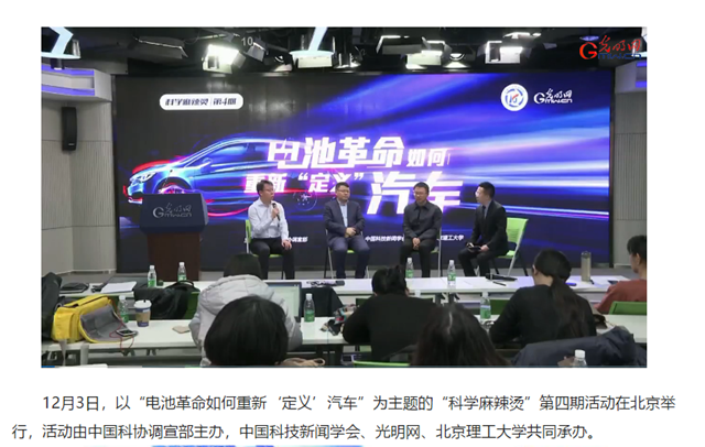 12月3日,以“电池革命如何重新‘定义’汽车”为主题的“科学麻辣烫”第四期活动在北京举行,活动由中国科协调宣部主办,中国科技新闻学会、光明网、德赢AC米兰官网共同承办。