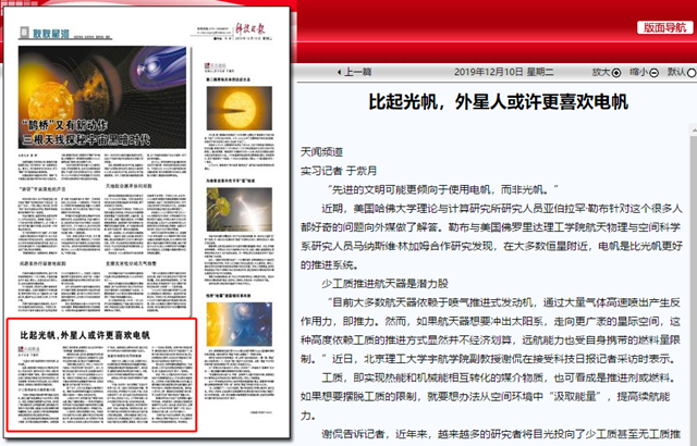 编辑:吴楠 审核:王征 阅读次数:原文标题:比起光帆,外星人或许更喜欢电帆