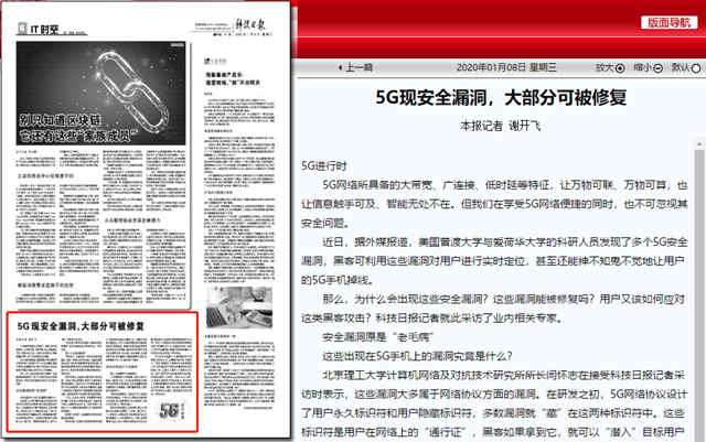 “不过,从总体上来看,这些漏洞所造成的问题,并非是5G网络所独有的,伪基站更不是什么新鲜的攻击方式。”闫怀志表示,传统的4G、3G等移动通信网络,也可能受到同样的威胁。