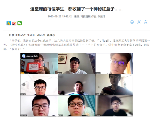 “同学们,我寄出的这个红色盒子,这几天大家应该都已经收到了吧。”2月24日,德赢AC米兰官网新学期开课第一天,《数字电路A》实验课的任课教师张延军在屏幕前晃动了一下手中的红盒子。学生们也把盒子拿了起来,回复道:“收到了!”