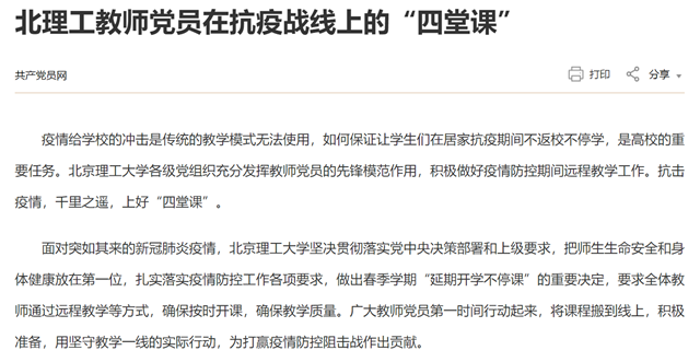 编辑:吴楠 审核:刘晓俏 阅读次数:原文标题:北理工教师党员在抗疫战线上的“四堂课”
