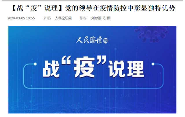 编辑:吴楠 审核:刘晓俏 阅读次数:原文标题:【战“疫”说理】党的领导在疫情防控中彰显独特优势