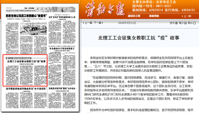 北理工工会征集女教职工抗“疫”故事