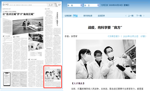 编辑:吴楠 审核:刘晓俏 阅读次数:原文标题:战疫,向科学要“良方”