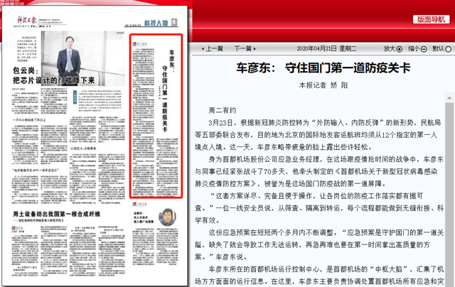 身为首都机场股份公司应急业务经理,在这场跟疫情抢时间的战争中,车彦东与同事已经紧张战斗了70多天,他牵头制定的《首都机场关于新型冠状病毒感染肺炎疫情防控方案》,被誉为是这场国门防疫战的第一道屏障。