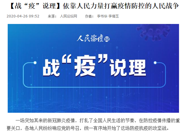 编辑:吴楠 审核:刘晓俏 阅读次数:原文标题:【战“疫”说理】依靠人民力量打赢疫情防控的人民战争