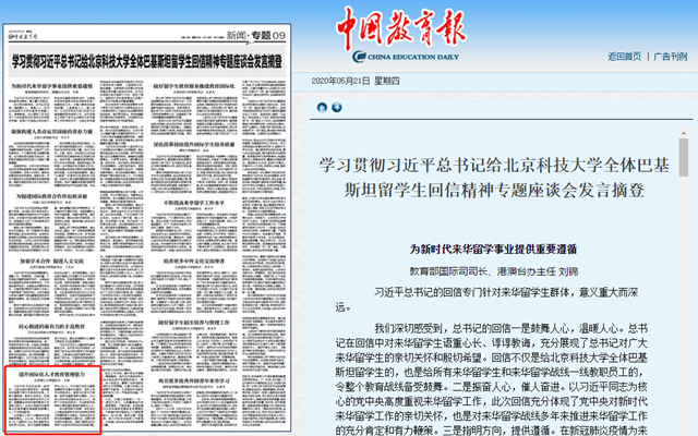 编辑:吴楠 审核:刘晓俏 阅读次数:原文标题:学习贯彻习近平总书记给北京科技大学全体巴基斯坦留学生回信精神专题座谈会发言摘登