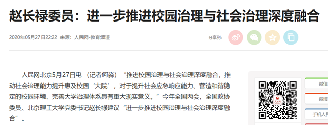 编辑:吴楠 审核:刘晓俏 阅读次数:原文标题:赵长禄委员:进一步推进校园治理与社会治理深度融合