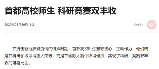 编辑:吴楠 审核:刘晓俏 阅读次数:原文标题:首都高校师生 科研竞赛双丰收