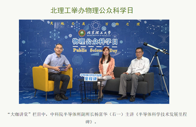 据介绍,此次公众科学日携手中国科学院物理研究所、半导体所,面向学生及广大物理爱好者,开设6个栏目:大咖讲堂、每周一哥、物理生活分享、趣味物理实验、爱生活爱物理、物理+。5月28日当天,主办方还发布了主题曲《飘向物理》。