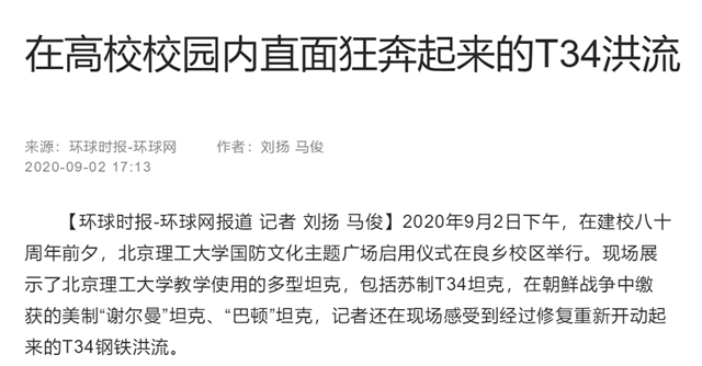 编辑:吴楠 审核:刘晓俏 阅读次数:原文标题:在高校校园内直面狂奔起来的T34洪流