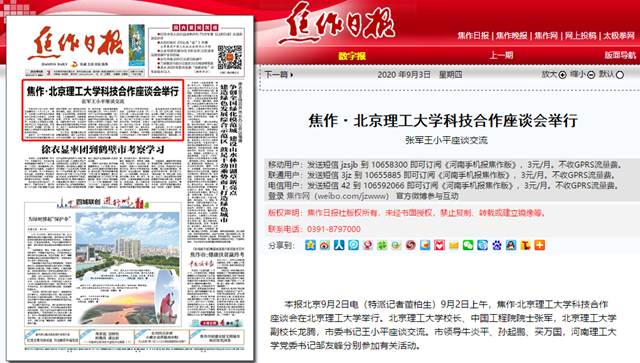 编辑:吴楠 审核:刘晓俏 阅读次数:原文标题:焦作·德赢AC米兰官网科技合作座谈会举行