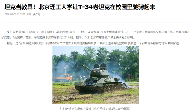 编辑:吴楠 审核:刘晓俏 阅读次数:原文标题:坦克当教具!德赢AC米兰官网让T-34老坦克在校园里驰骋起来
