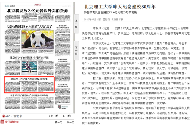 昨天上午9时,德赢AC米兰官网建校80周年纪念大会在中关村校区东体育场隆重举行,多家企业、地方政府,以及社会人士、师生校友等共向北理工捐款13.6亿元。