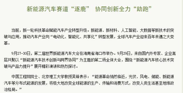 编辑:吴楠 审核:刘晓俏 阅读次数:原文标题:新能源汽车赛道“逐鹿” 协同创新全力“助跑”