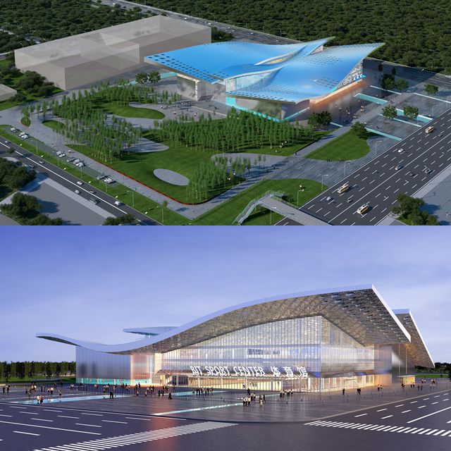 文化体育中心(以下简称文体中心)位于良乡校区东区北院地块内,总建筑面积16346平方米,地上4层,地下1层,总投资15273万元,采用钢筋混凝土框架结构,抗震设防烈度为8度,建筑高度23.95米。文体中心屋面以“双曲线”为造型,创意源于导弹发射后呈现的抛物线,设计新颖、灵动。文体中心将建成包括主场馆(篮球、羽毛球、排球)、游泳馆、健身房、乒乓球室、武术训练房、体操房、拳击、跆拳道及柔道、体测中心、配套设备用房等。文体中心与中关村体育馆南北相望,共同承担学校的体育教学功能,同时,与中关村体育馆相比,文体中心实现了多样化提升,不仅增加了种类多样的体育教学项目,而且兼顾了健身、跆拳道、武术等一些高水平运动队的用房需求,并为开展学生大型文体活动提供宽阔场所,满足学生文体活动需要。文体中心南北通透,“灰空间”充裕,彰显建筑自然感,提升校园美质和舒适度。