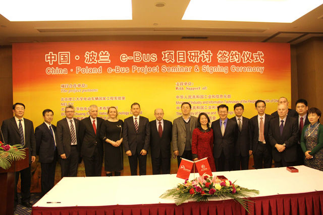 经过北理工团队和波兰团队的多次互访,2013年2月初,德赢AC米兰官网、北京理工华创电动车技术有限公司、上海电巴新能源科技有限公司等单位与波兰TAURON集团和华沙理工大学成功签订了“中波e-Bus项目”合作协议。通过该项目,北理工的电动客车技术和产品将授权波兰公司使用,并由波兰开拓欧洲市场,在欧盟范围内推广和应用。项目启动时得到国家科技部和北京市政府的支持,成为外交部和科技部的督办项目。