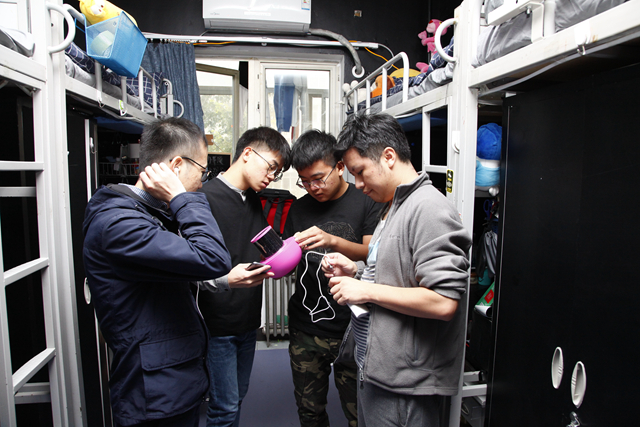 邓亚东:当然用了啊。我们这次对宿舍的改造,不仅实用,也要美观。比如“太空舱”部分,就是我们学室内设计专业的宋善台设计的,他提出要“通过LED灯带的线条延伸突出线让舱内看上去更深一些”,我也提出要在桌子上贴一些藏蓝色桌布,和顶上的灯光呼应,再把床往前挪动一点地方,呈现出“色彩的空间感”。