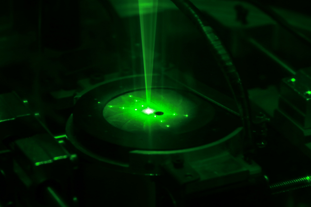 “真正的TEM在工作时,由于发射的是电子束,相当于射线,所以其光路是不可见的,操作是‘暗箱’的。但将TEMS作为教学仪器时,运用激光,你就可以对其工作原理一目了然,这让我们能够更好地理解TEM的抽象概念和工作原理。”岳峻逸边说边演示,“你看,激光束模拟的是电子束,而我们放置的光栅就是在模拟被检测的材料样品,光栅的条文疏密还有方向相当于材料样品的微观结构,激光照射后,光发生偏转,然后用透镜把光汇聚到成像平面上,我们就得到了一列列周期排列的亮点。通过测量亮点的间距,就可以算出光栅的结构数据,这一过程和电子束检测材料样品过程和原理是一致的。”
