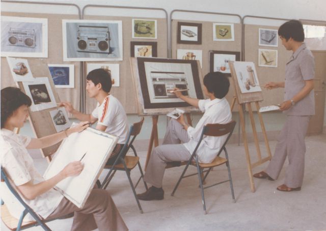 1986年,工业设计系学生在设计课程中