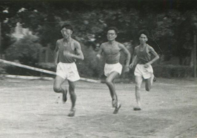 求学时期的祁载康不但学习成绩优秀,还非常热爱运动。图为祁载康(中)参加运动会中长跑比赛