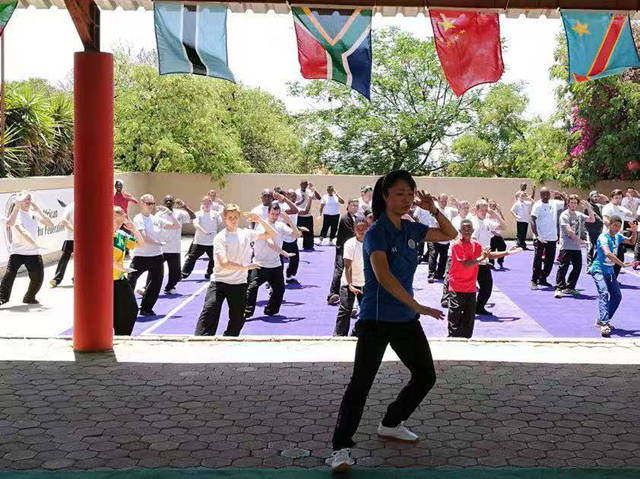 受国家和学校委派,邱慧芳赴南非进行太极拳教学