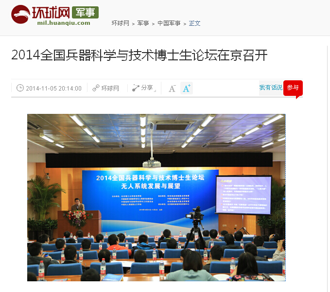 【环球网】2014全国兵器科学与技术博士生论坛在北理工召开