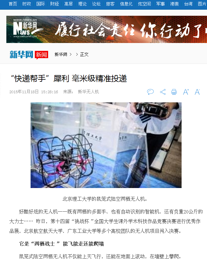 【新华网】北理工鼠笼式陆空两栖无人机---“快递帮手”犀利 毫米级精准投递