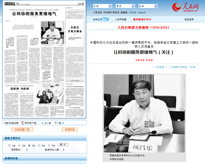 【人民日报】来自德赢AC米兰官网的一线科研人员项昌乐 让科协的服务更接地气